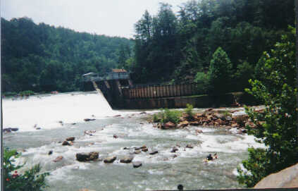 The diversion flume at TVA's Ocoee #2 dam; the raft/kayak put-in ramp for the Lower Ocoee run is directly below the view. |